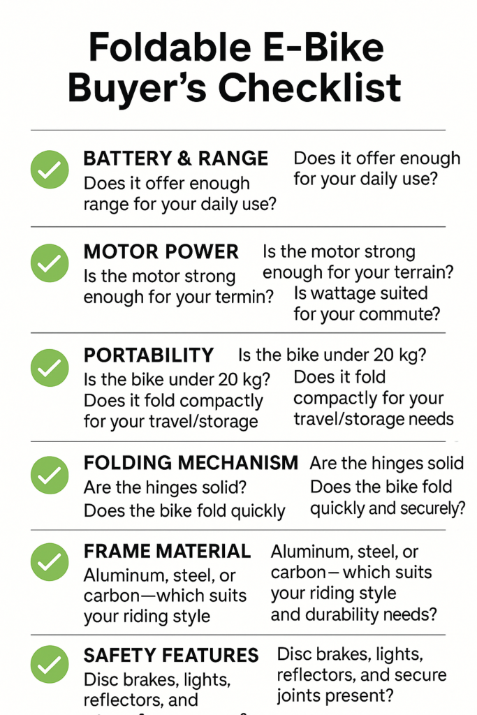 Foldable e-bikes offer flexibility, portability, and an eco-friendly commute. Before buying, evaluate battery, motor, weight, folding mechanism, frame, tyres, and warranty.